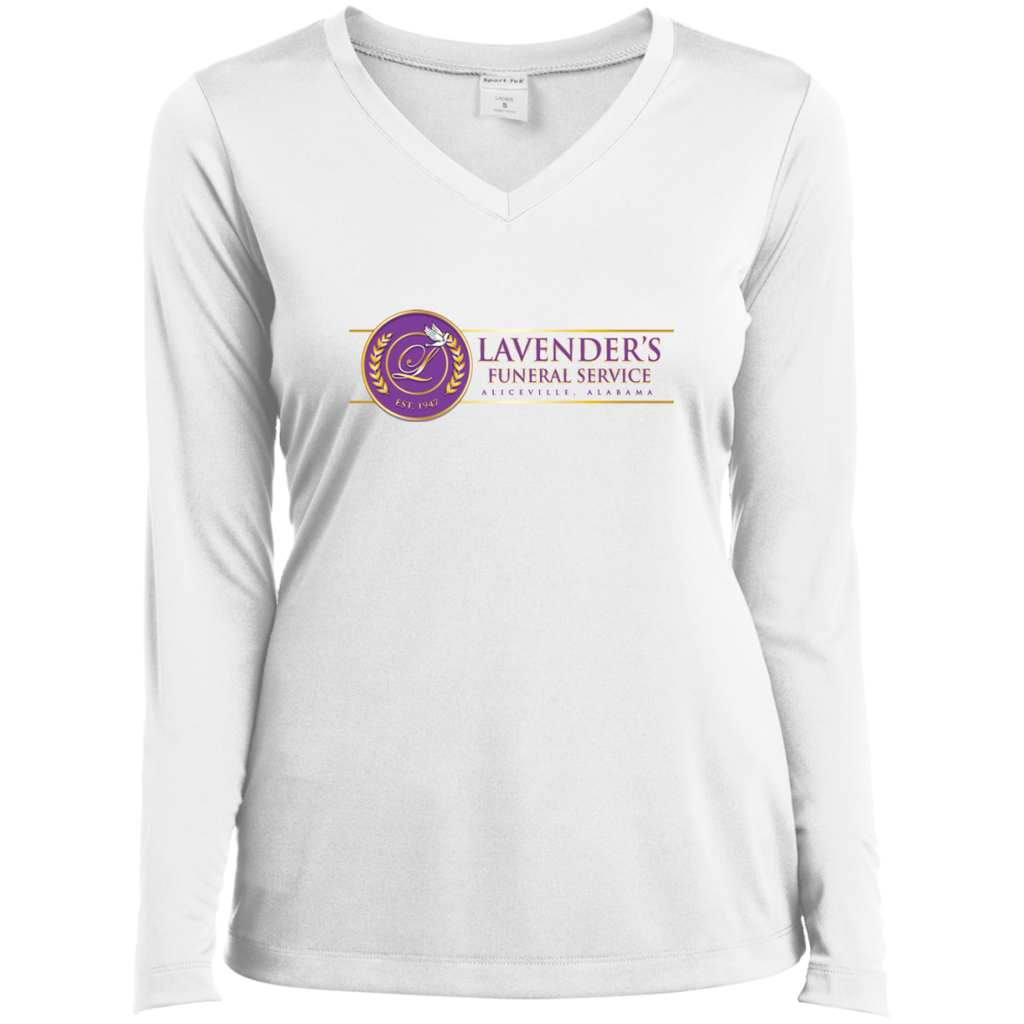 Lavenders Funeral Service LST353LS Sport-Tek Ladies' LS Performance V-Neck T-Shirt